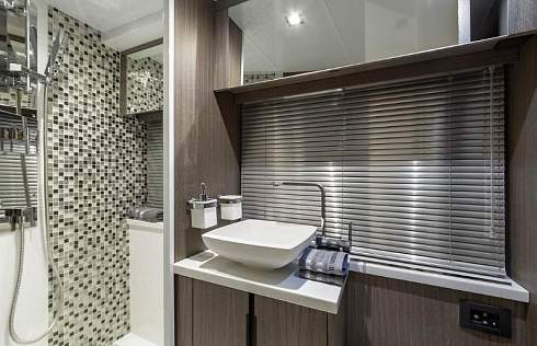 VIP каюта в носу так же просторная и обладает, и имеет общий душ - туалет с еще одной гостевой каютой, которая находится по правому борту. Но имеет собственную дверь, для доступа прямо из каюты.