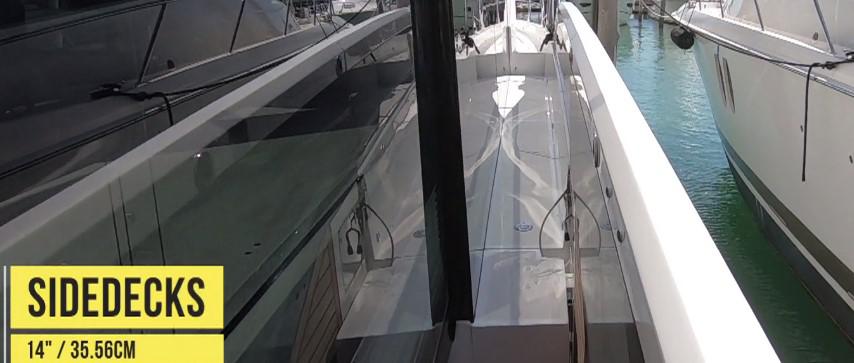 От нижнего поста управления есть выход на боковой проход, что особенно удобно при швартовке «лагом». Ширина боковых проходов составляет 35.6 см и имеет 2 ступеньки.