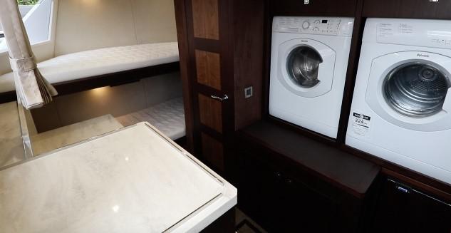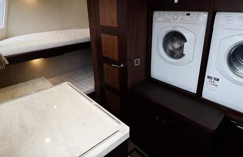 Каюта экипажа имеет 2 спальных места, множество окон и все необходимое для жизни. Микроволновка, холодильник, туалет и душ. Так же в каюте экипажа могут располагаться стиральная и сушильная машина.