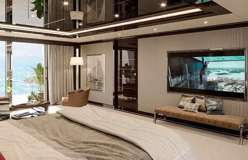 Впечатляющий интерьер способен с комфортом разместить до 12 гостей в шести каютах, которые не оставят равнодушными даже истинных ценителей роскоши и комфорта. Яхта располагает панорамной VIPкаютой, а также мастер-каютой с собственным балконом, открывающим захватывающий вид.