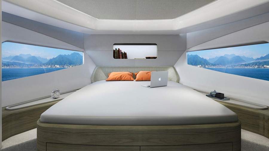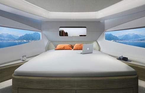 Самой впечатляющей особенностью Majesty 49 является ее трехкаютная планировка: элегантная мастер-каюта во всю ширину яхты с двуспальной кроватью, большими окнами по бортам корпуса и прекрасно оборудованной ванной комнатой, плюс две просторные двухместные каюты.