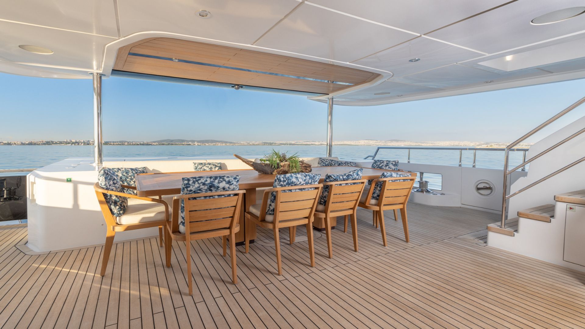 Выдающейся особенностью TRUE SENSE является ее огромный сандек, который по словам верфи «на 30 процентов больше, чем у яхт этого класса».