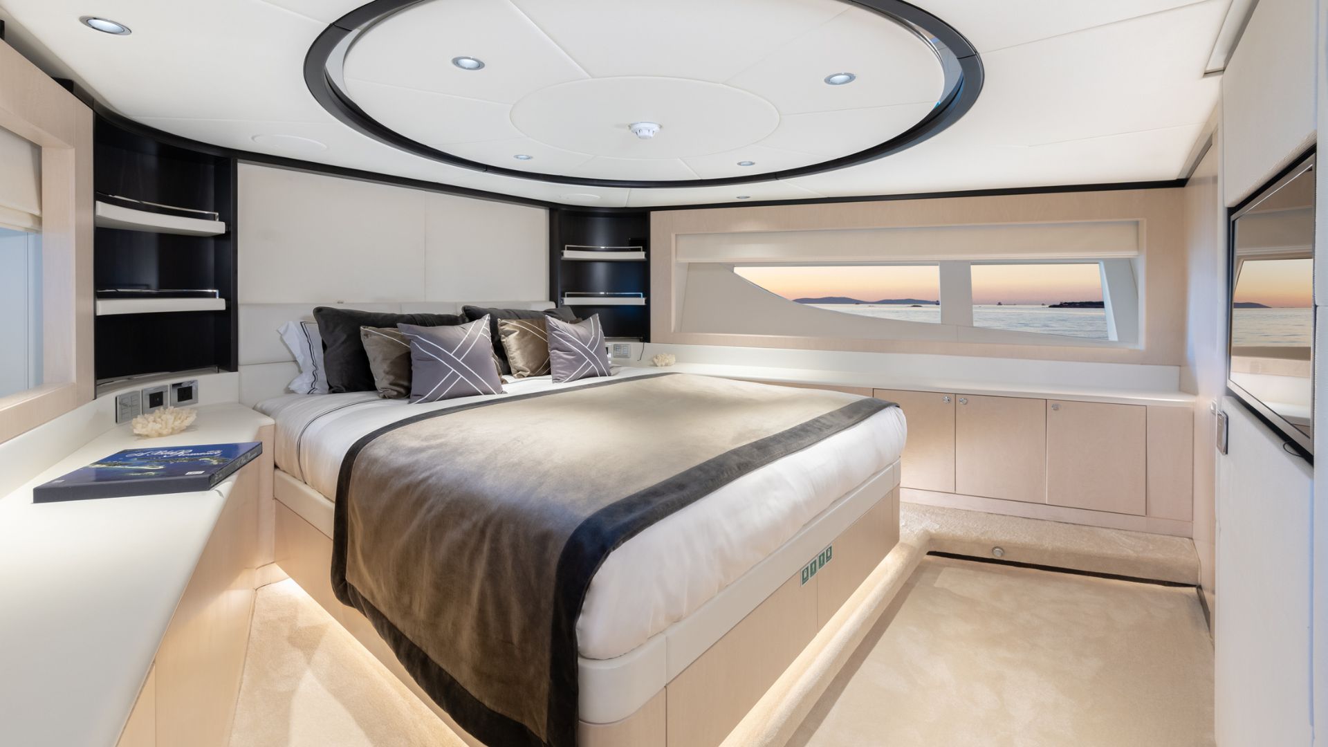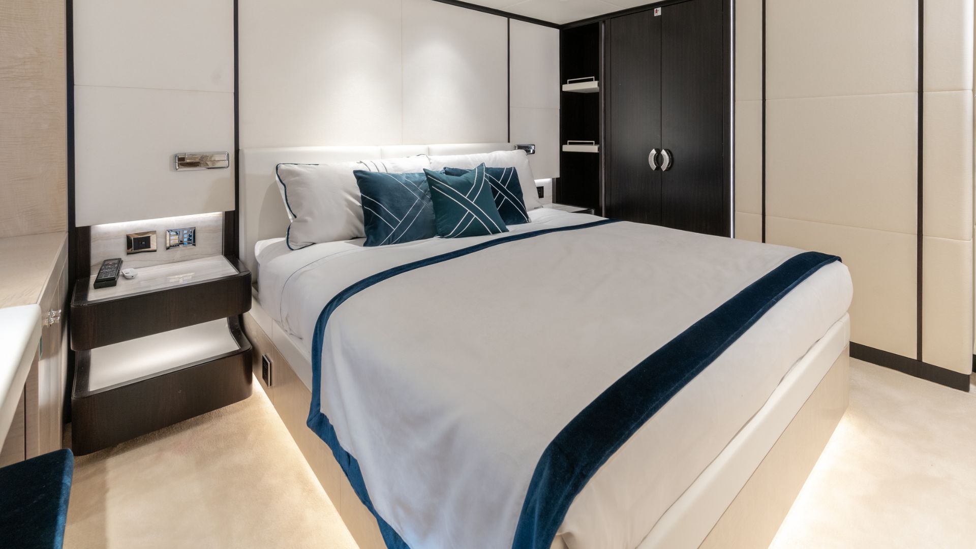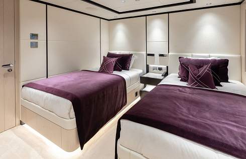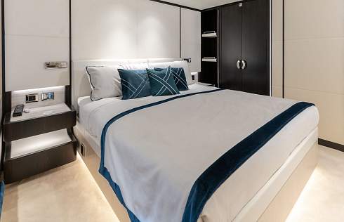Планировка TRUE SENSE позволяет разместить до 10 гостей в 5 роскошных каютах и 7 членов экипажа. На нижней палубе расположены 3 двухместные гостевые каюты, гостевая каюта с двумя односпальными кроватями и каюта владельца на главной палубе. У каждой каюты своя ванная комната.