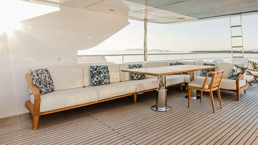 • просторный beach club с уютной диванной зоной и душем (также трансформируется в гараж для тендера и водных игрушек);