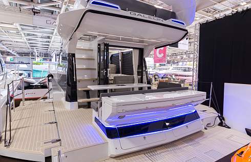 Представители верфи Galeon разместились в двух разных залах, чтобы продемонстрировать широкий выбор моделей лидера яхтенного рынка: компактный Galeon 370 HTC, бестселлер Galeon 420 FLY, просторный Galeon 680 FLY, стильный Galeon 425 HTC, многофункциональный Galeon 485 HTC.