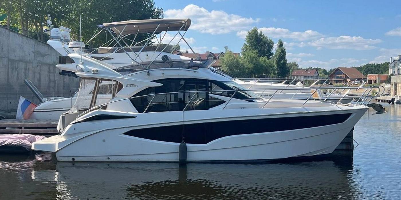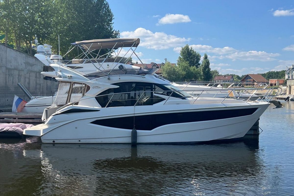 Galeon 360 FLY оснащен двумя дизельными двигателями на колонках 2 x Volvo Penta D4 225hp и имеет богатую комплектацию.