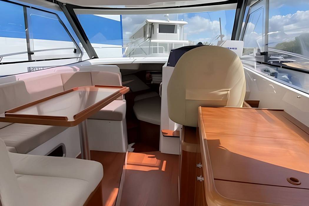 Катер имеет полностью закрытую ходовую рубку. В салоне расположена обеденная зона, которая трансформируется в спальное место, с хорошо оборудованным камбузом.