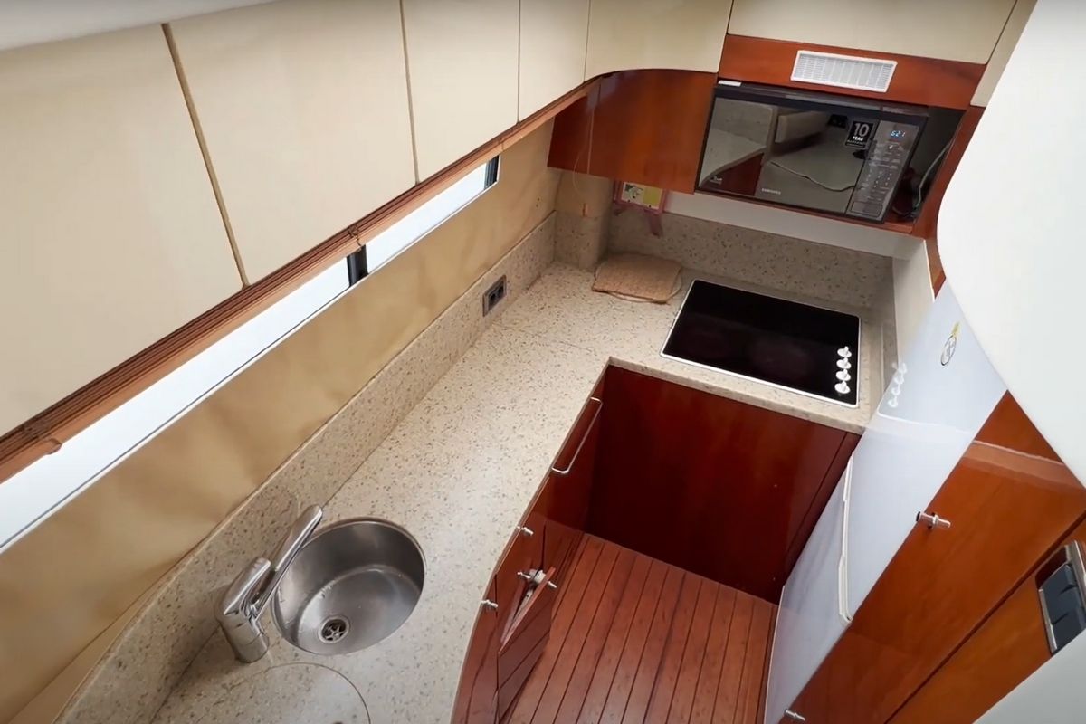 Яхта с интересной планировкой, идеально подходящей для чартера. Три каюты с тремя санузлами плюс отдельная каюта капитана обеспечивают комфортное размещение. Камбуз скрыт на нижней палубе, а многозонный салон и две лестницы на флайбридж добавляют удобства и функциональности.