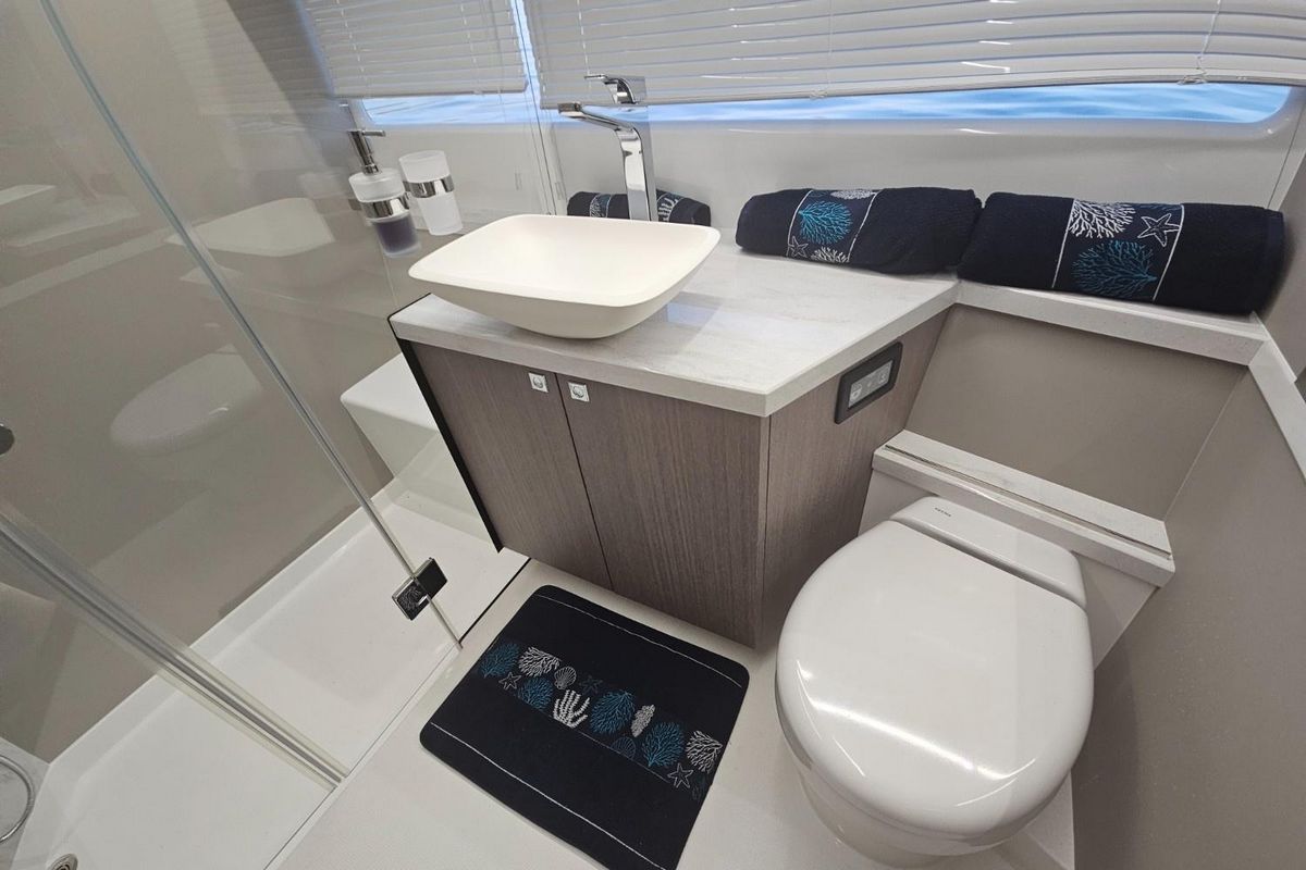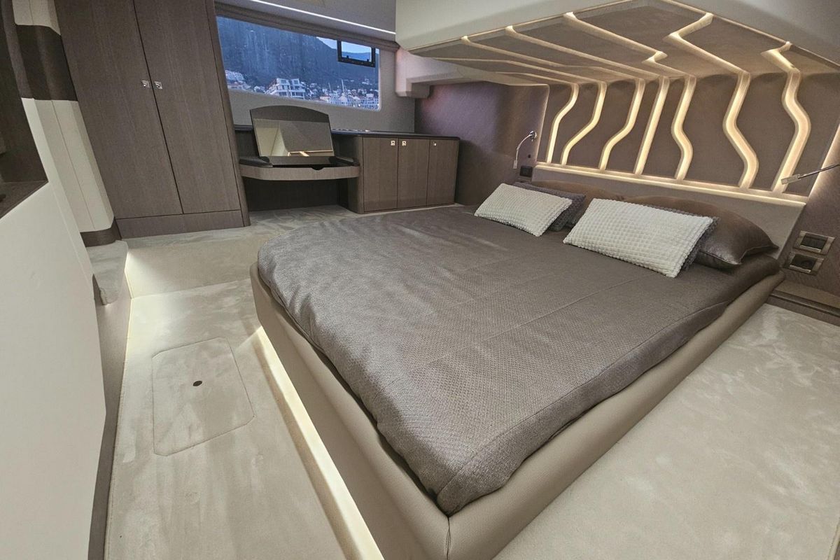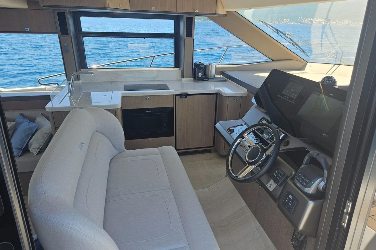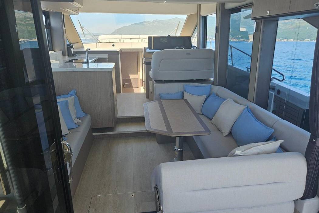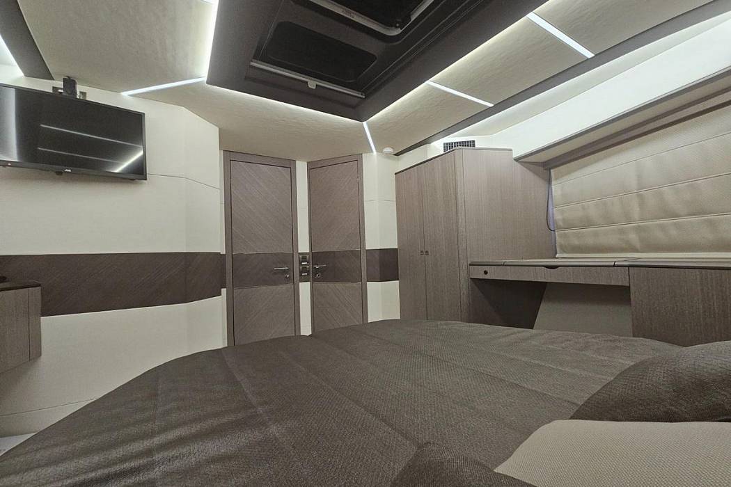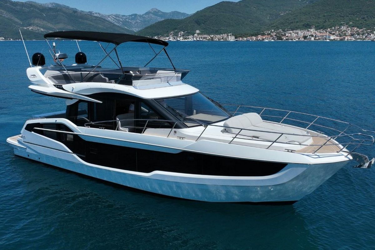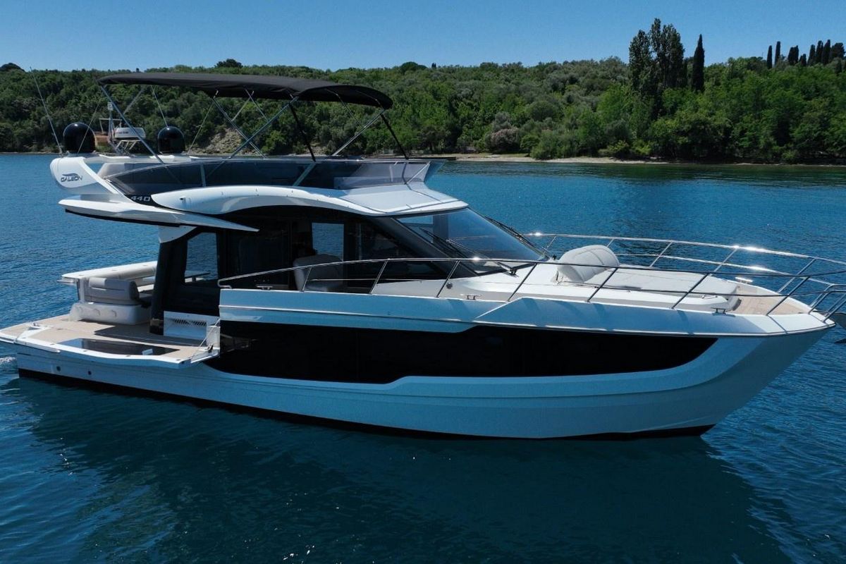 Galeon 440 Fly 2024 года с наработкой 80 моточасов, оснащен двумя двигателями VOLVO PENTA D8-600. Планировка включает 2 просторные каюты и 2 санузла. Оборудован раскладными балконами в кокпите.СТАНДАРТНОЕ ОБОРУДОВАНИЕ