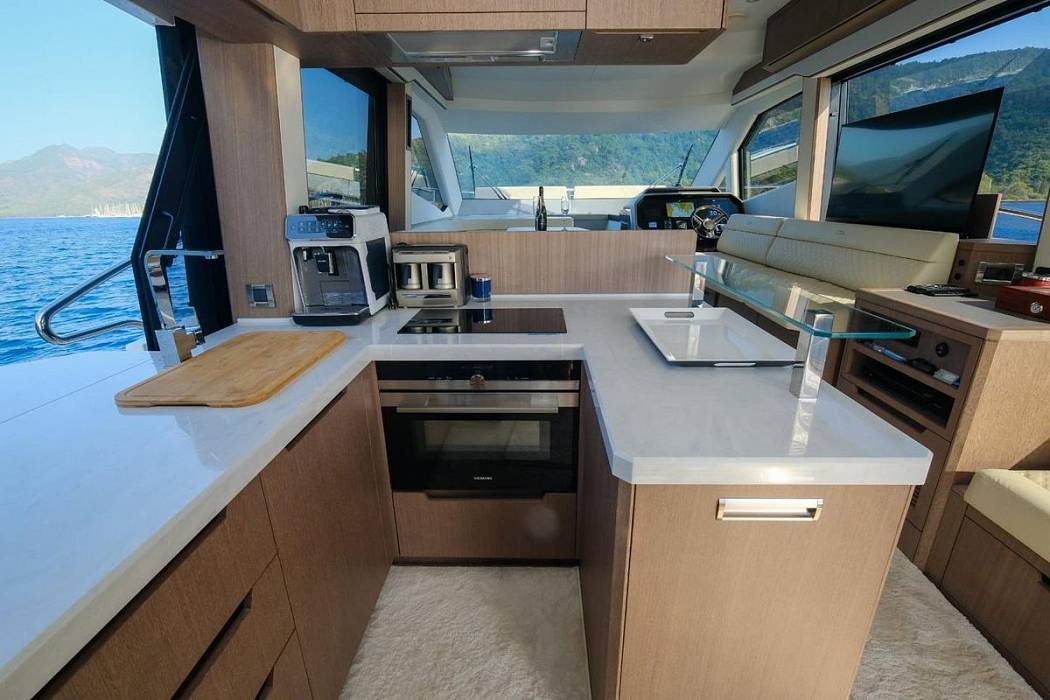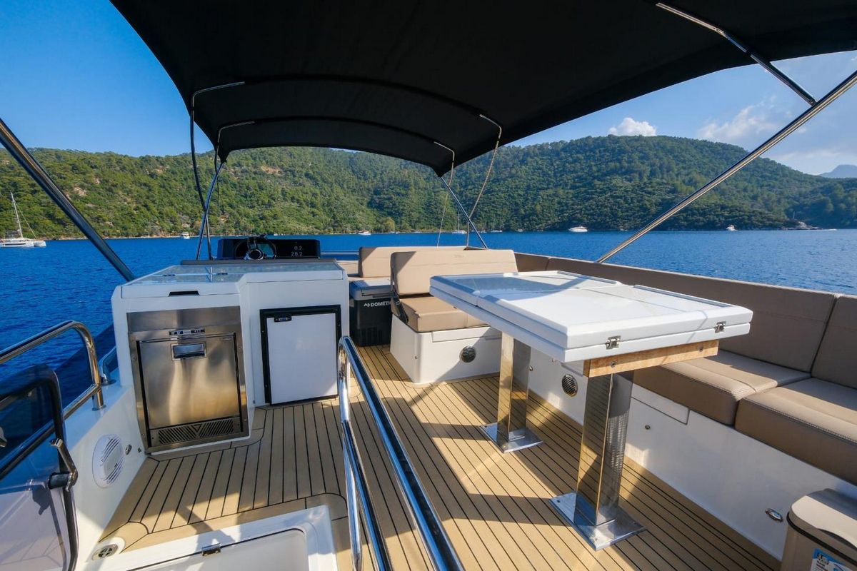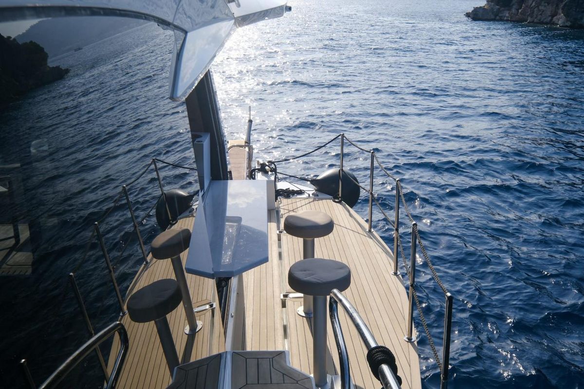 Пакет Beach Mode:складные кормовые балконы и раздвижные боковые окна в кормовой части, трансформируемая барная зона в кокпите