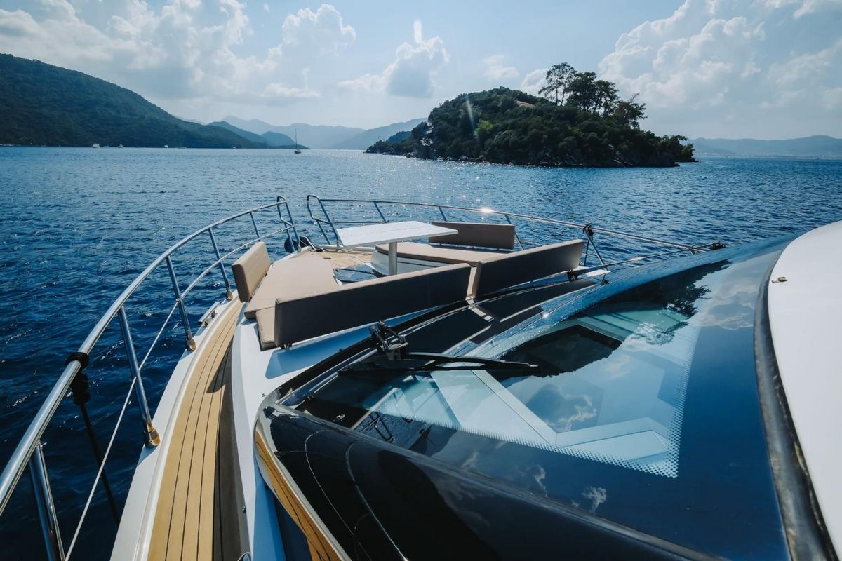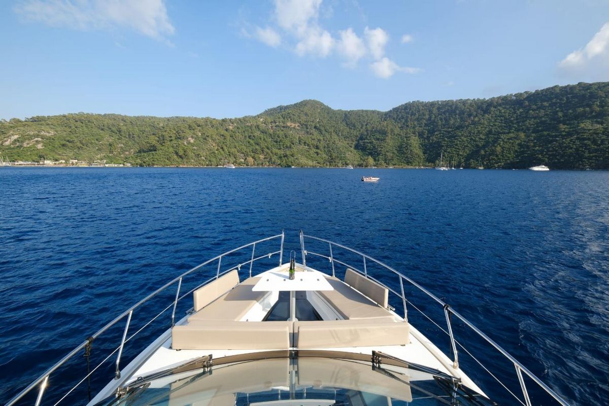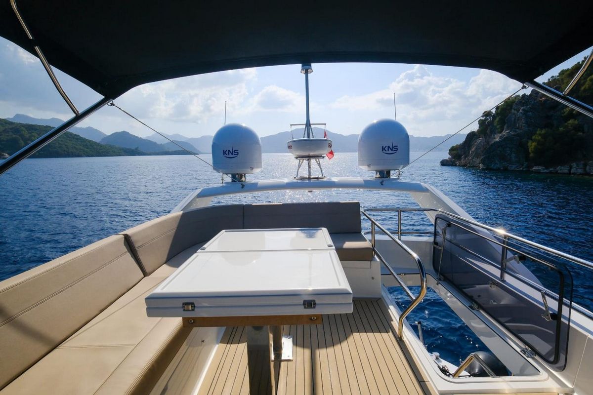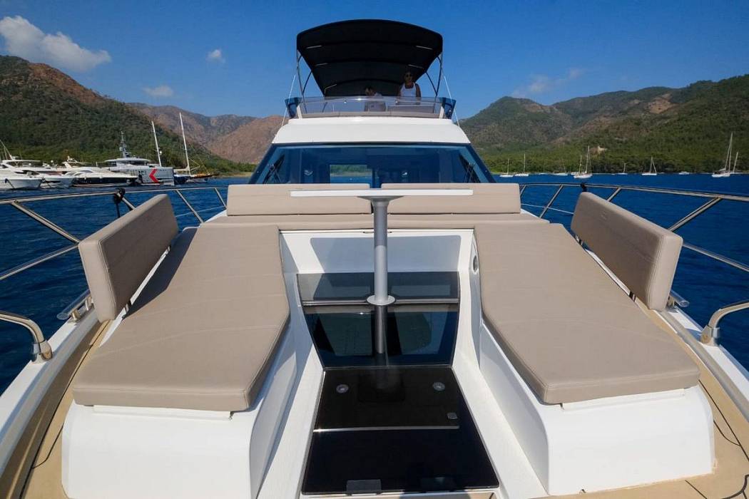 Фиксированный диван с зоной для загара на носовой палубе