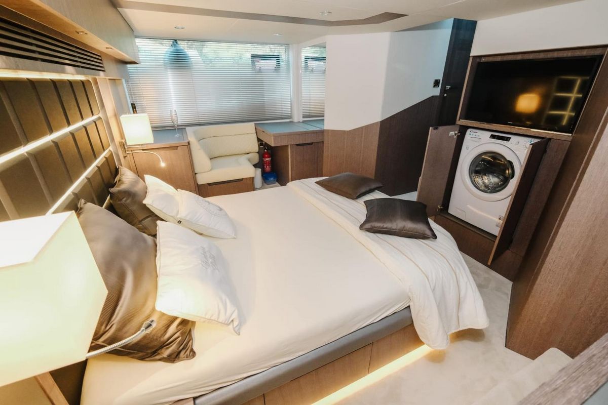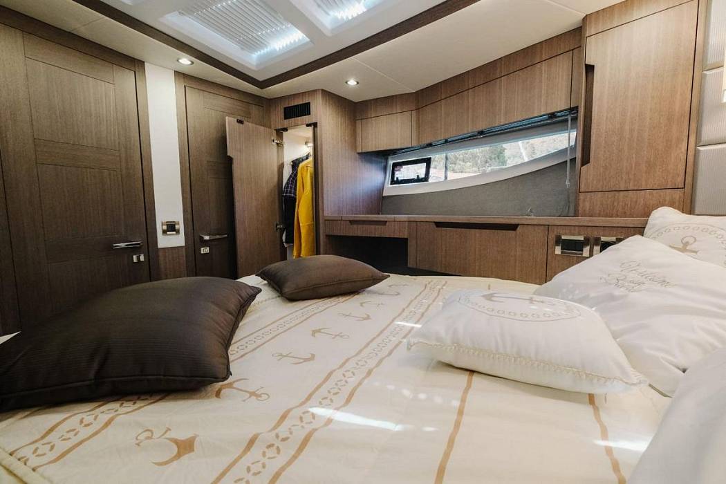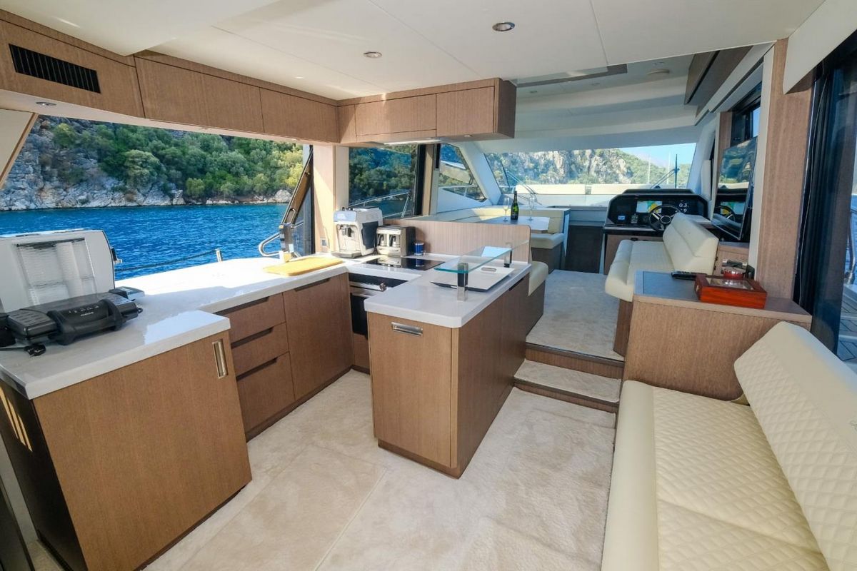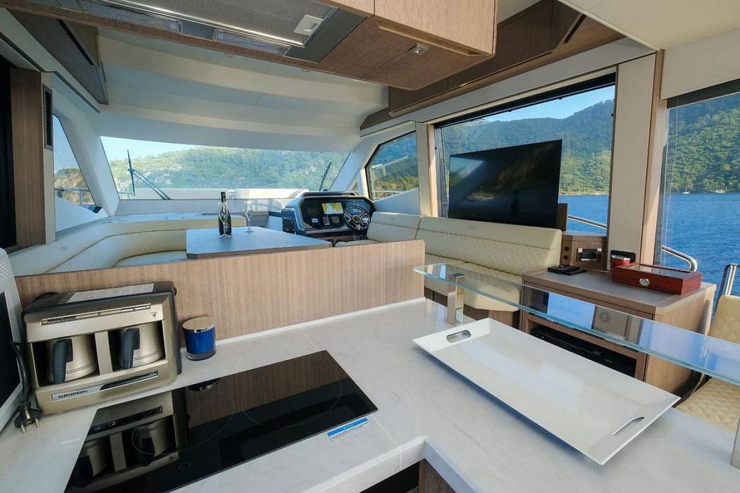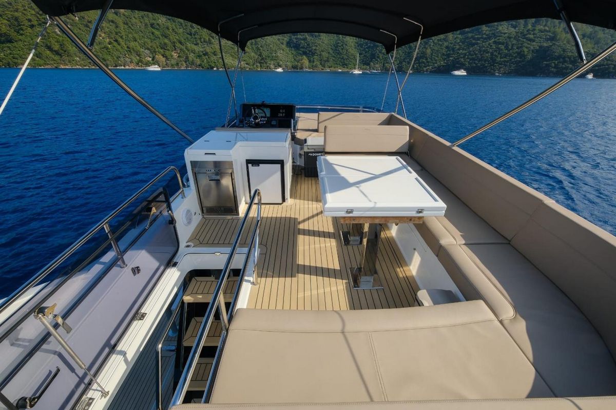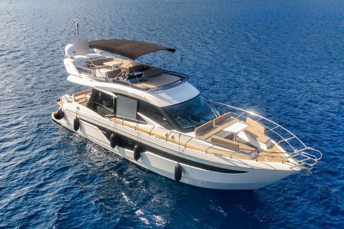 Galeon 500 Fly 2023 года выпуска с низкой наработкой, в идеальном состоянии. Этот 500 Fly оборудован популярным “пляжным режимом” с раскладными балконами, диваном с поворотным механизмом на корме и тремя каютами на нижней палубе. Двигатели 2 x Volvo Penta D11-670 (155 моточасов).КОМПЛЕКТАЦИЯ
