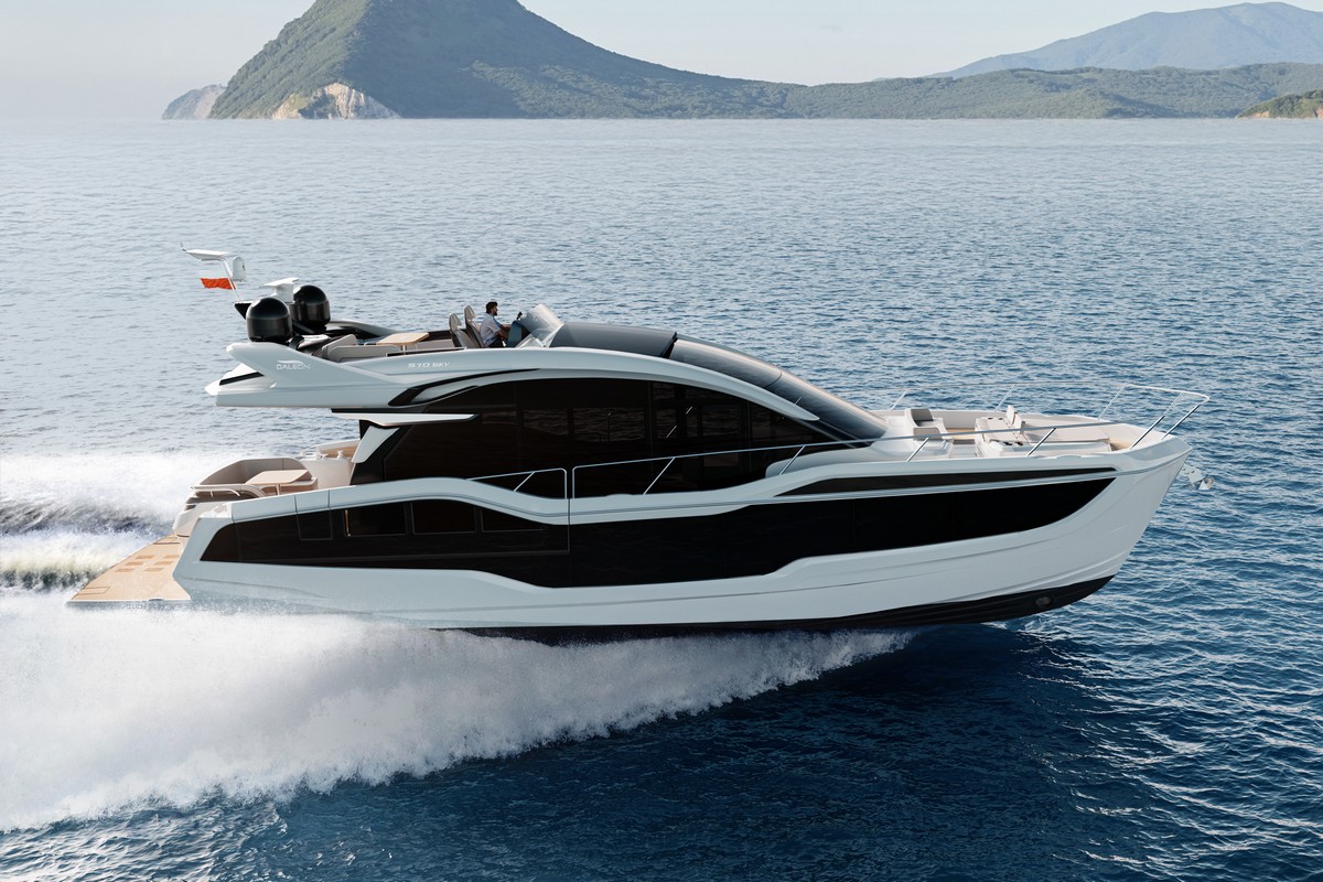 Доступна для заказа. Galeon 570 SKY — яхта, где передовые технологии встречаются с безупречным стилем, а каждая деталь создана для максимального комфорта и впечатлений. Galeon 570 SKY задаёт новый стандарт морской роскоши, объединяя динамичный облик хардтопа с практичностью и простором скрытого флайбриджа.