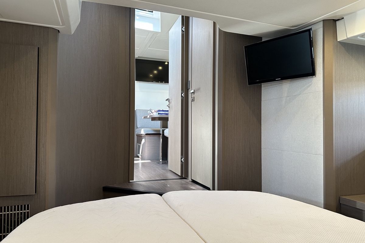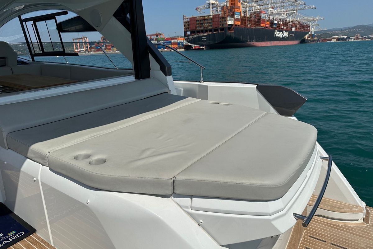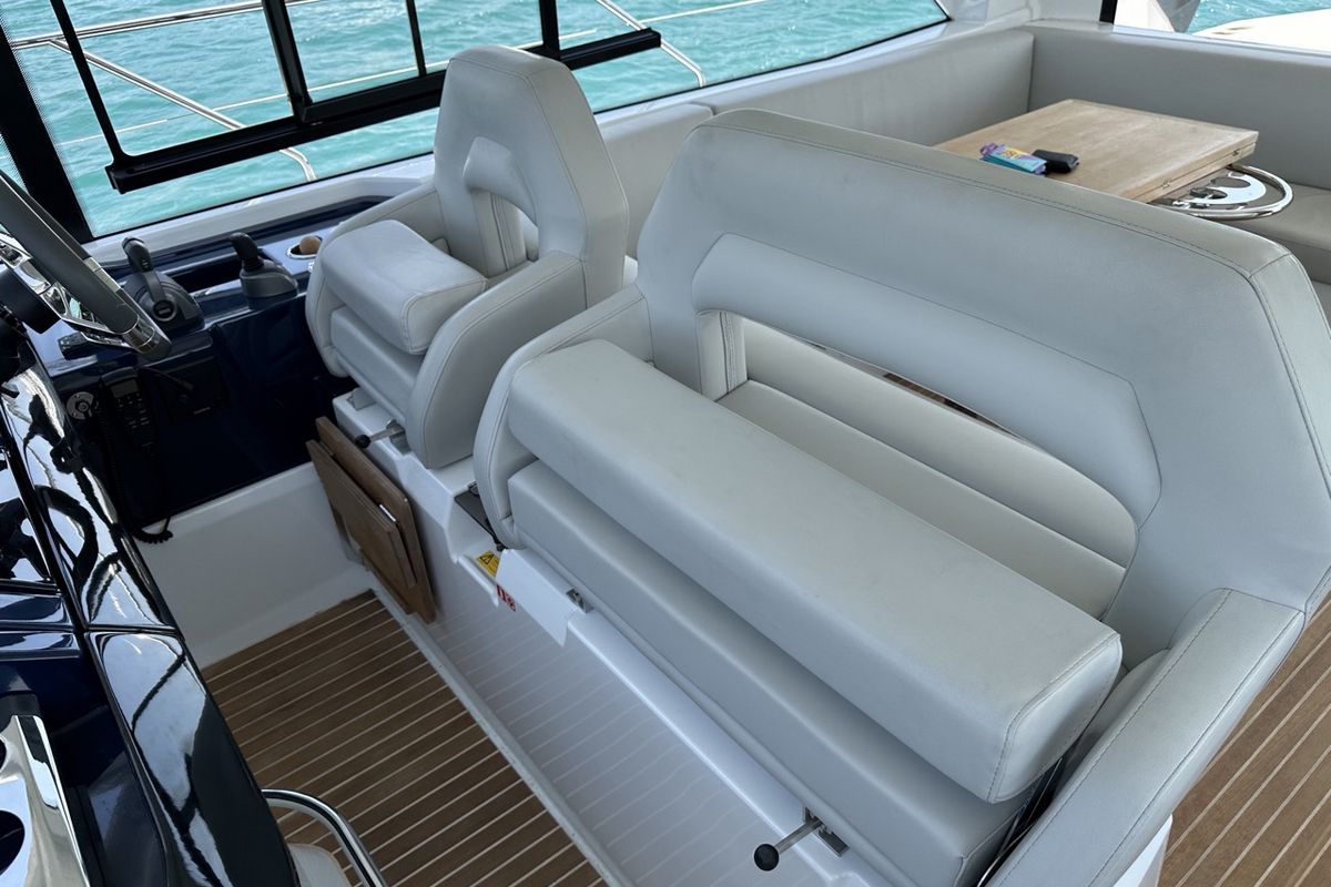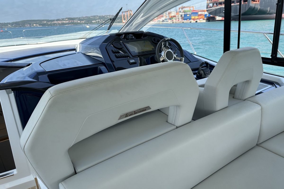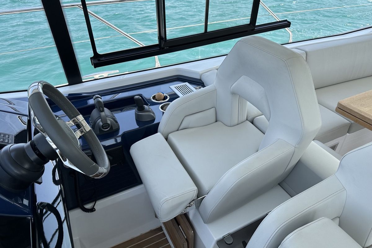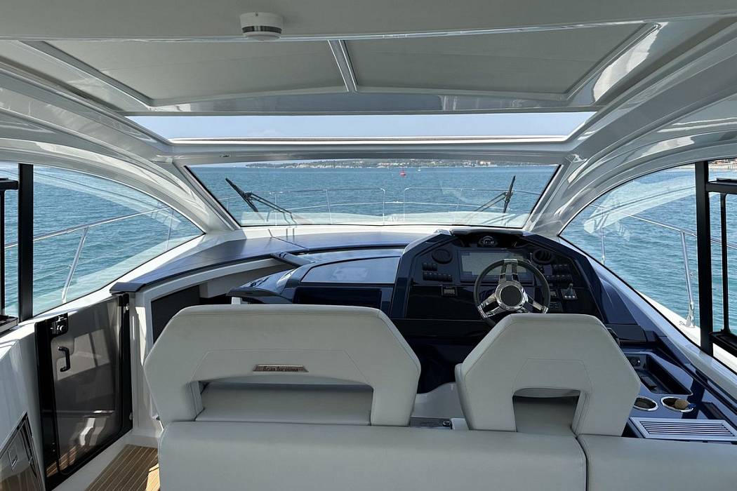 Beneteau Gran Turismo 45 2022 года оснащена двумя дизельными двигателями Volvo D6 по 380 л.с. с джойстиком, наработка — 190 моточасов. Планировка включает 2 каюты, 2 санузла и нижний салон. Оборудована хардтопом с открывающейся крышей.КОМПЛЕКТАЦИЯ