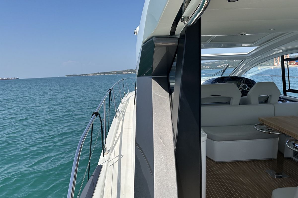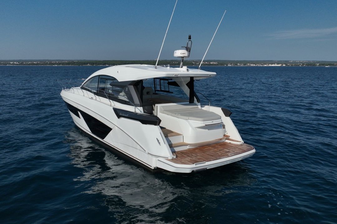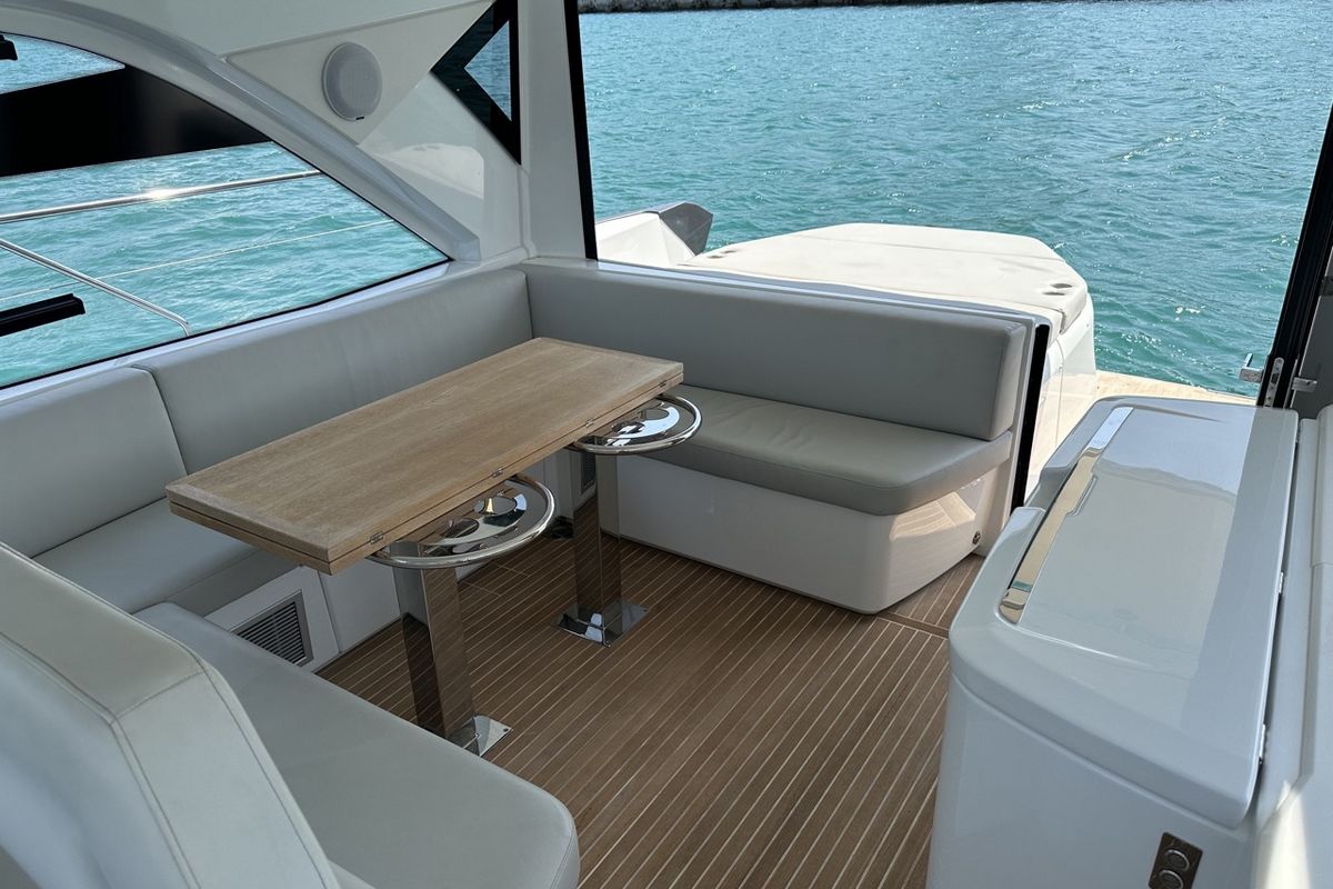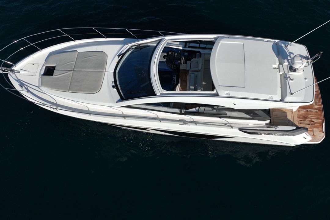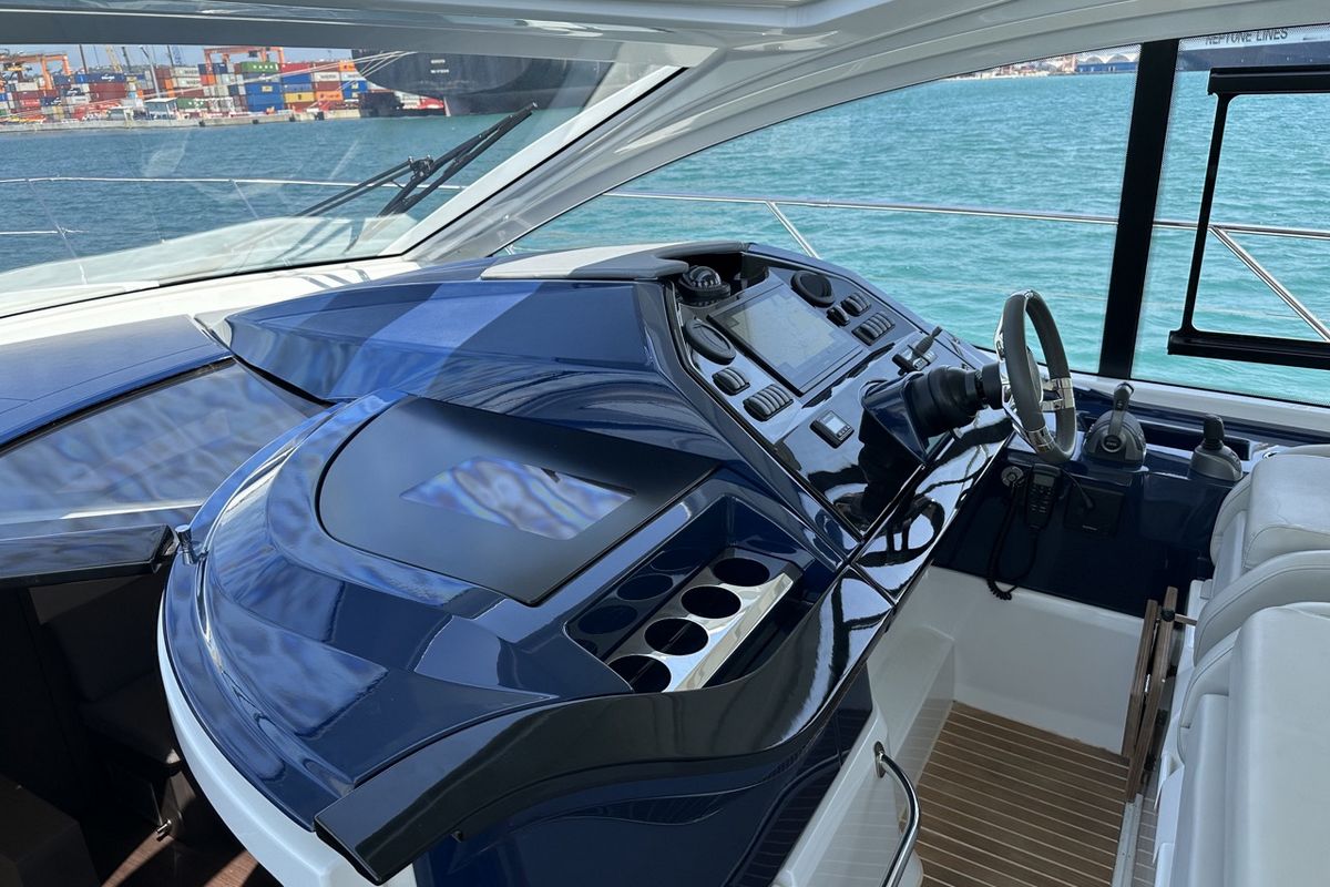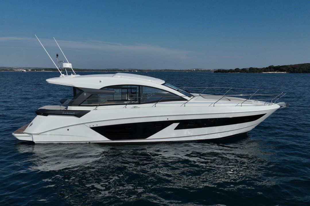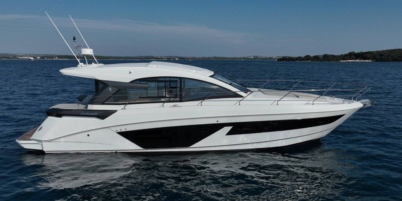 Beneteau Gran Turismo 45 2022 года оснащена двумя дизельными двигателями Volvo D6 по 380 л.с. с джойстиком, наработка — 190 моточасов. Планировка включает 2 каюты, 2 санузла и нижний салон. Оборудована хардтопом с открывающейся крышей.КОМПЛЕКТАЦИЯ