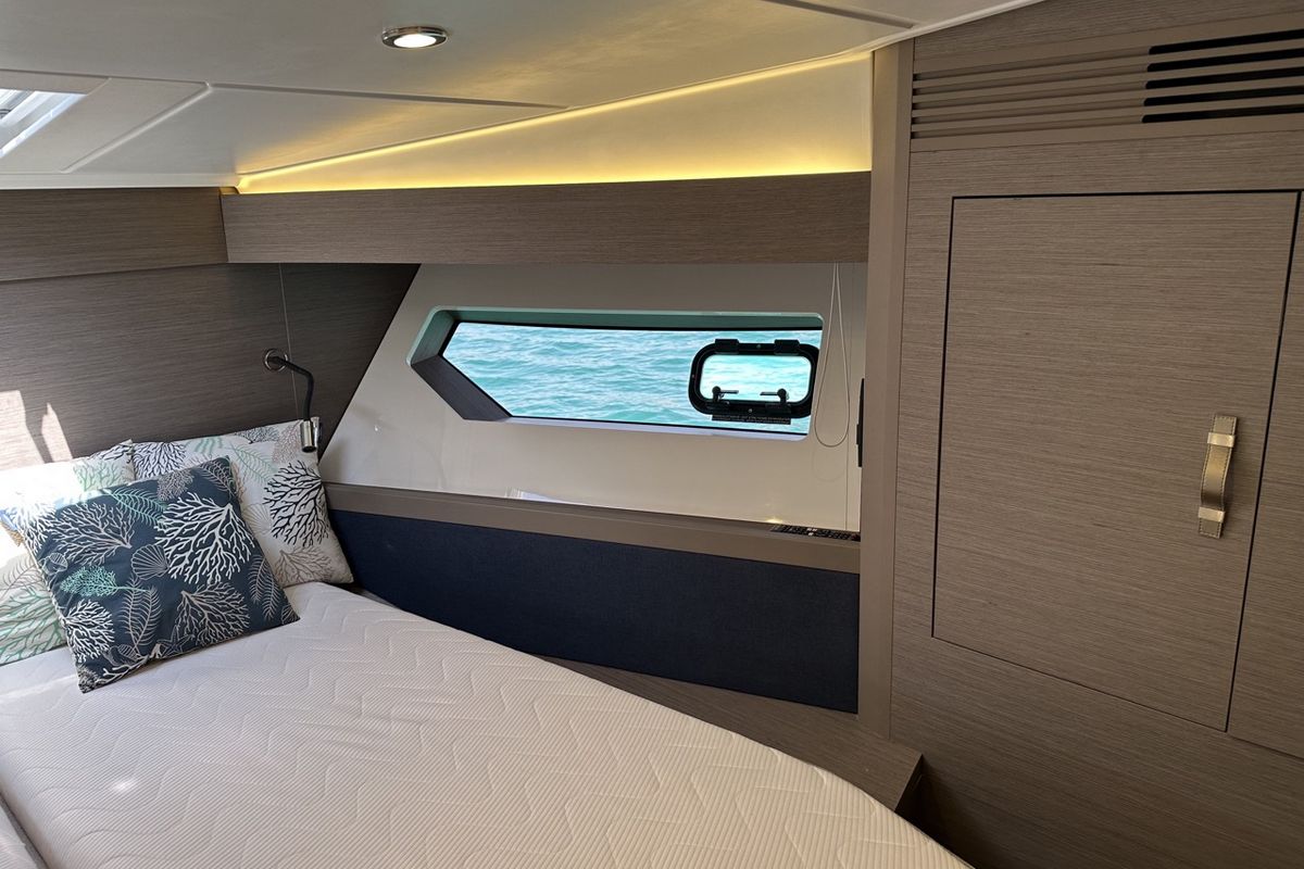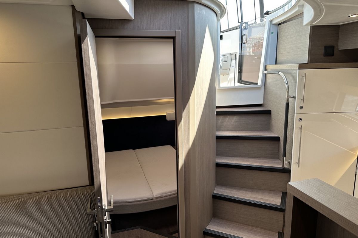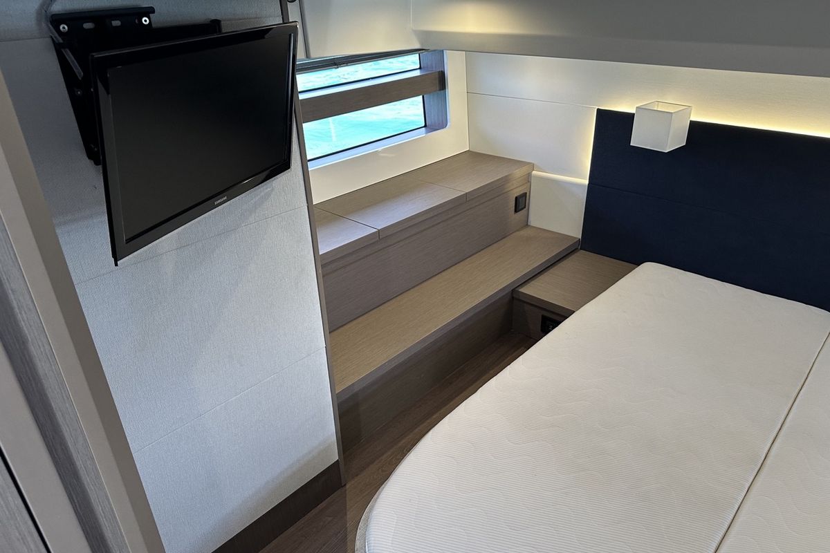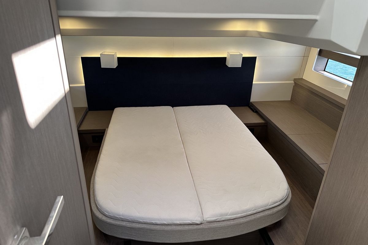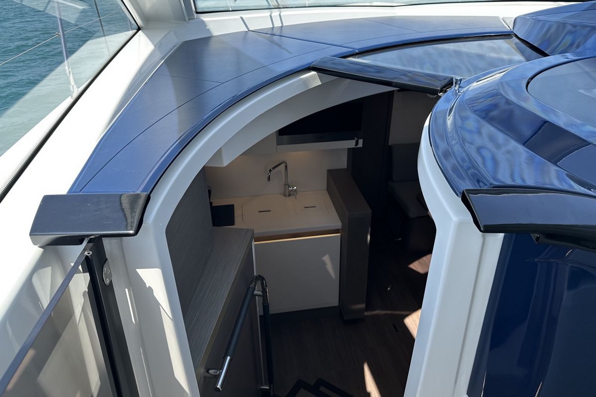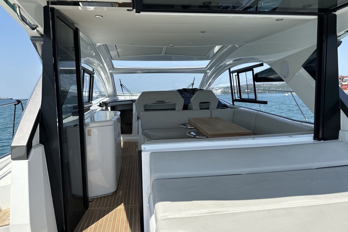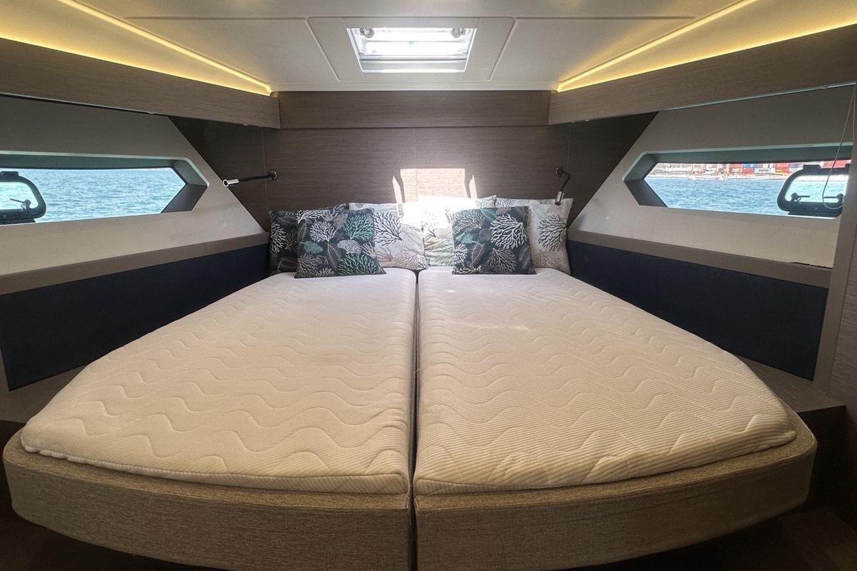 Beneteau Gran Turismo 45 2022 года оснащена двумя дизельными двигателями Volvo D6 по 380 л.с. с джойстиком, наработка — 190 моточасов. Планировка включает 2 каюты, 2 санузла и нижний салон. Оборудована хардтопом с открывающейся крышей.КОМПЛЕКТАЦИЯ