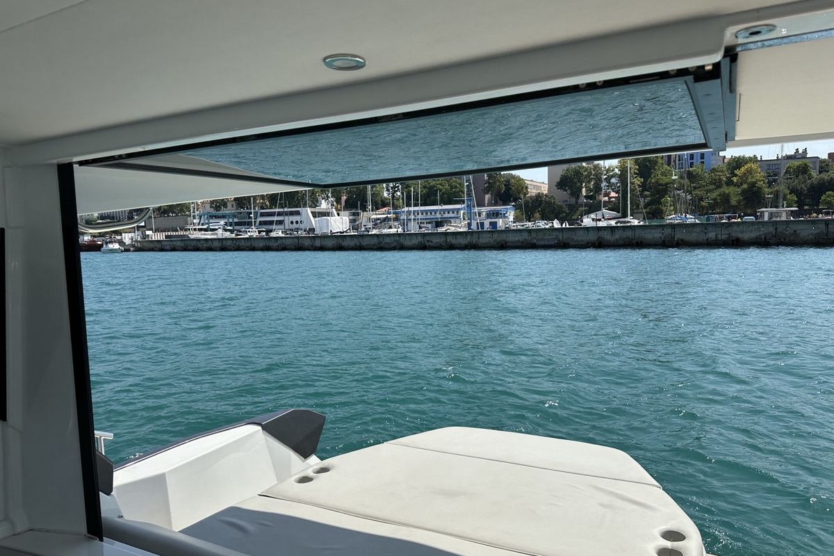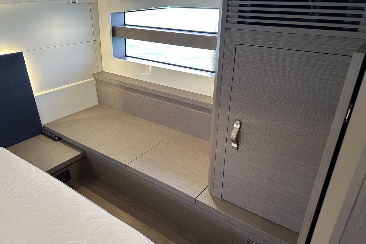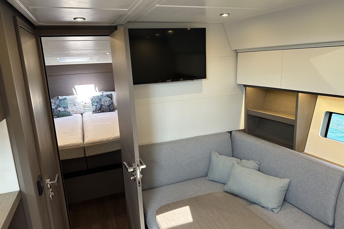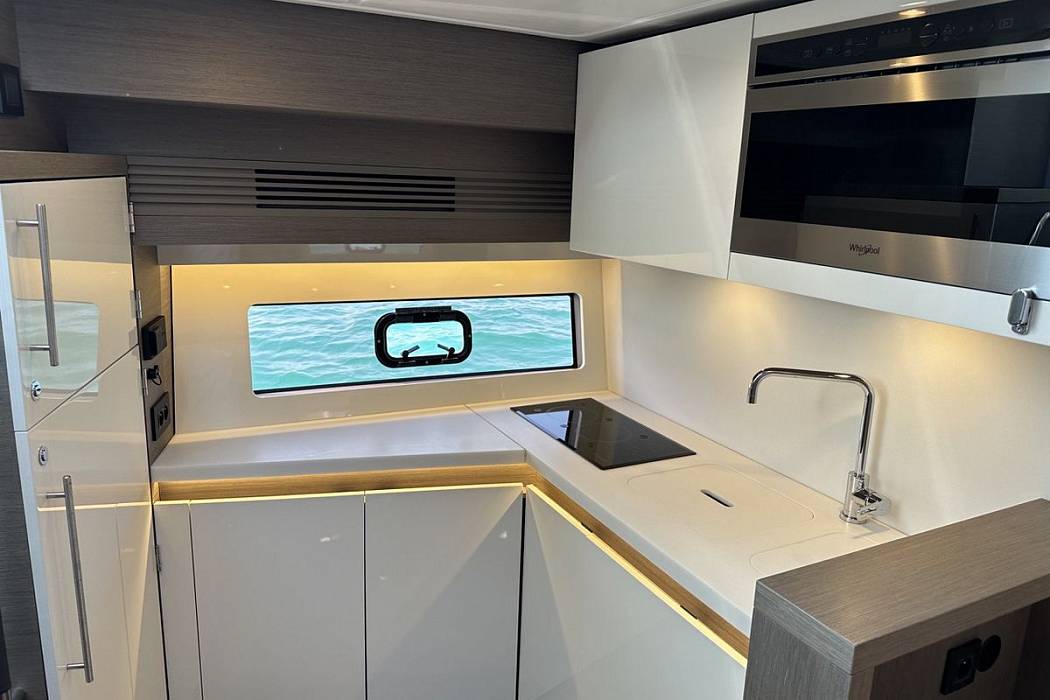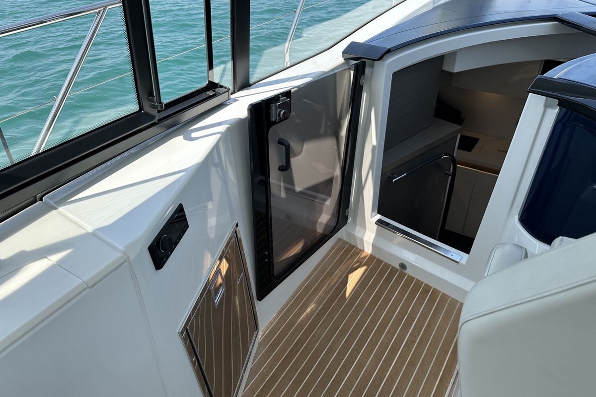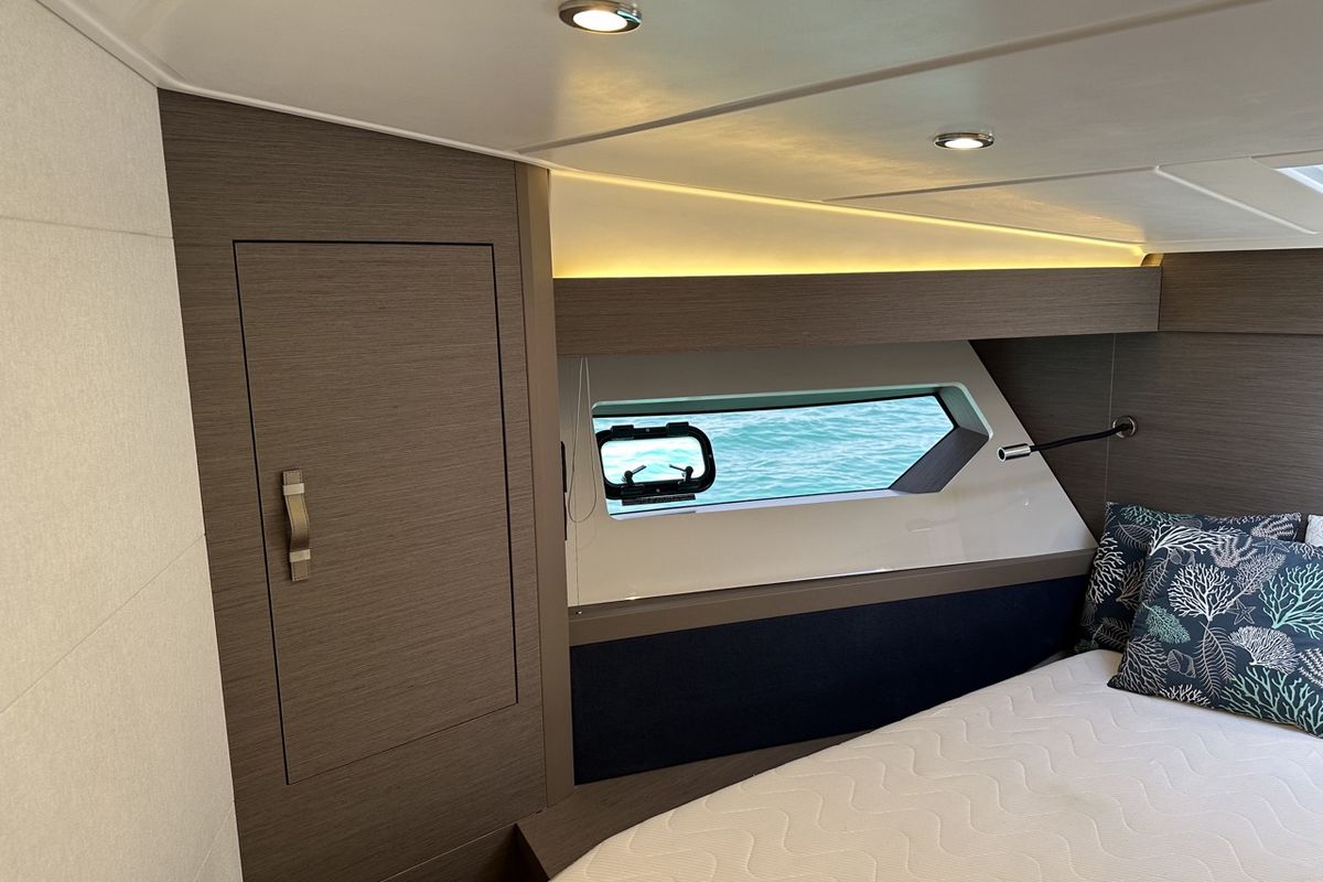 Beneteau Gran Turismo 45 2022 года оснащена двумя дизельными двигателями Volvo D6 по 380 л.с. с джойстиком, наработка — 190 моточасов. Планировка включает 2 каюты, 2 санузла и нижний салон. Оборудована хардтопом с открывающейся крышей.КОМПЛЕКТАЦИЯ