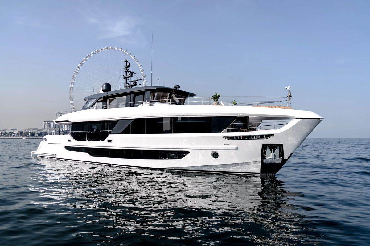 Доступна для заказа. Majesty 100 Terrace - новая модель, разработанная в сотрудничестве со студией Phathom Studio. Благодаря своему элегантному и современному экстерьеру Majesty 100 Terrace предлагает на 20% больше пространства для развлечений по сравнению с предыдущими моделями, что делает ее идеальной для проведения встреч.