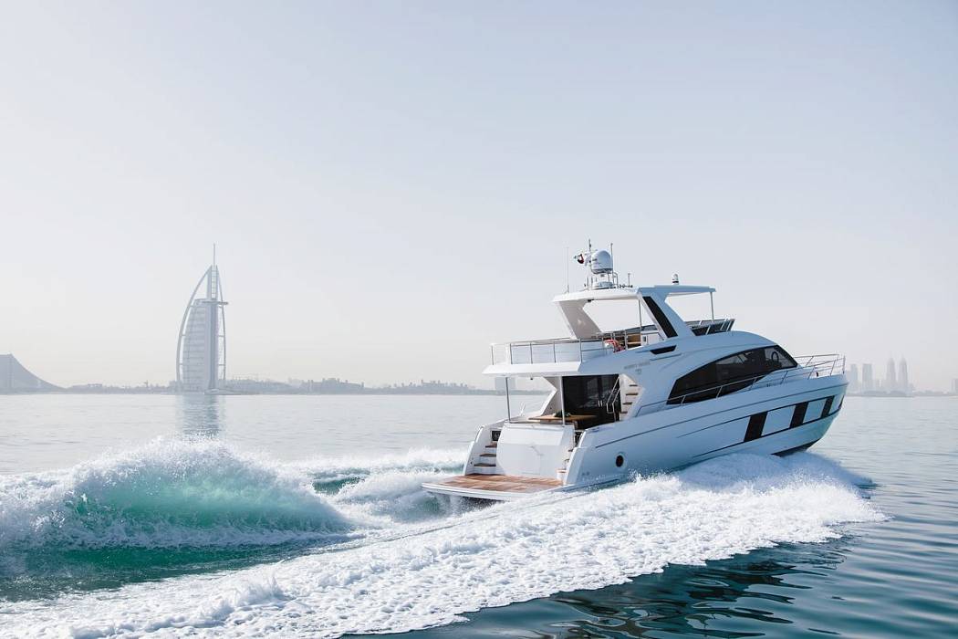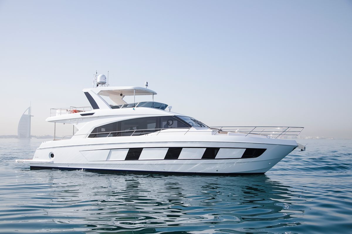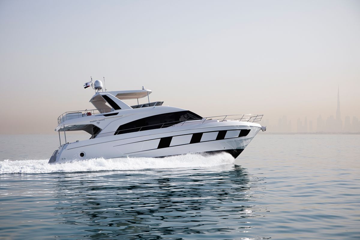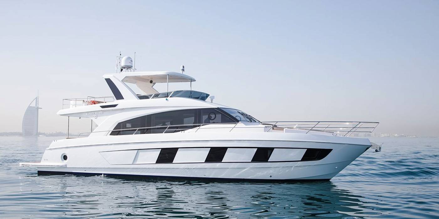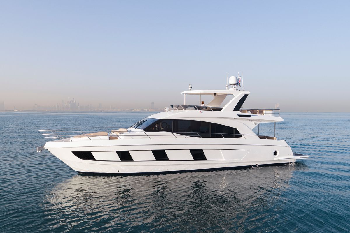 18.8-метровая Majesty 62 отличается изящным профилем и полузакрытым флайбриджем. Планировка яхты с комфортом разместит 7 гостей в 4 каютах на нижней палубе.