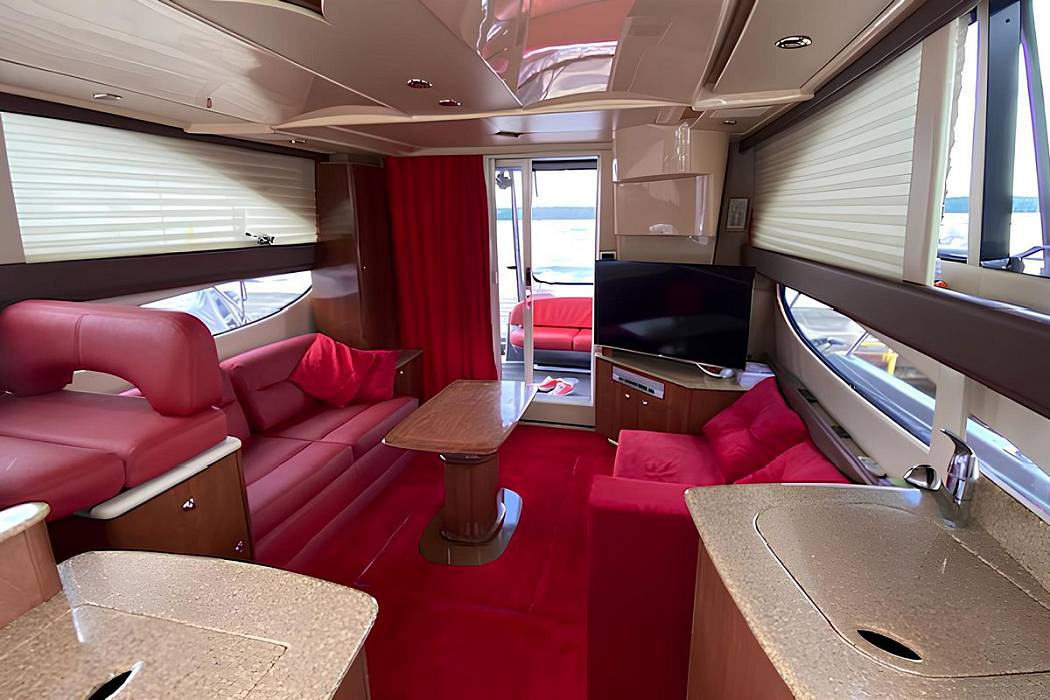 Из неоспоримых плюсов: яхта легка в управлении для одного человека, два двигателя и два подруливающих устройства позволяют с простотой швартовать лодку даже в ветреную погоду.