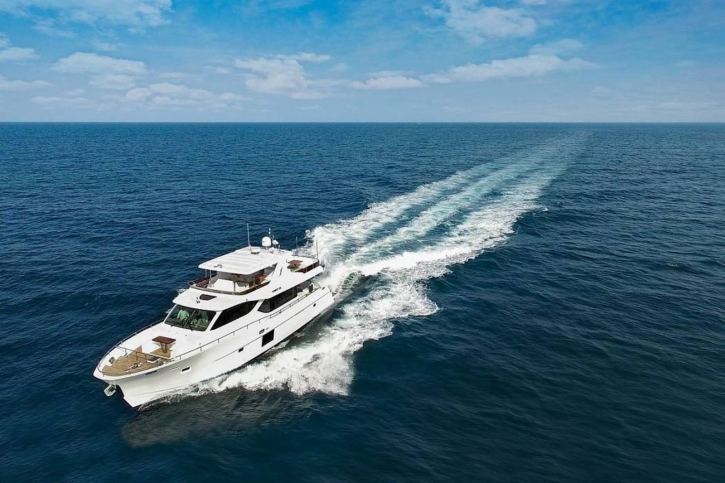 Доступна для заказа. Nomad 65 SUV демонстрирует рациональное использование пространства на борту и имеет 3 двухместные каюты для 6 гостей и две каюты экипажа. Яхта строится с использованием современных композитных материалов для снижения веса и стоимости владения, а также повышения устойчивости.