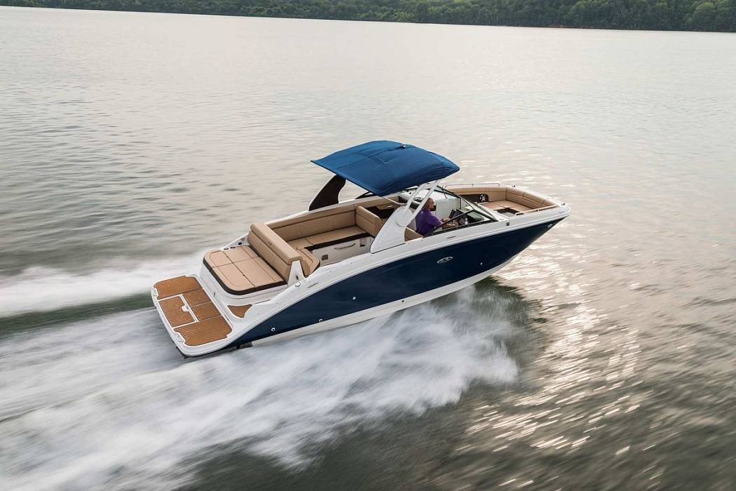SeaRay 270 SDX — отличный кандидат на роль первой лодки для владельца, который хочет сразу получить удобную, функциональную и почти новый катер без сложностей в эксплуатации. В данном случае речь идёт о SeaRay 270 SDX 2024 года, который находился на воде всего один сезон, а наработка двигателя составляет около 80 моточасов.Внешне SeaRay 270 SDX выглядит современно и аккуратно. Синий корпус, тиковое покрытие палубы, спортивная арка и черная рамка остекления формируют цельный и актуальный образ. В кормовой части расположен внушительный лежак для загара, а рядом встроен выдвижной душ, что удобно после купания. Плавательная платформа расположена близко к воде и подходит для активного отдыха.